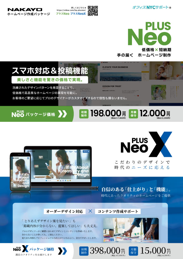 イメージ素材豊富イメージ写真やイラスト素材を追加料金なく組み込めます。※プラスNeoは10枚程度迄